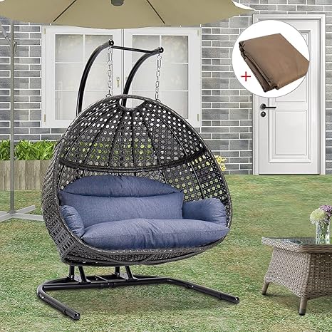 Tome 2 Person Swing Chair With Stand X Large Hanging Egg Chair With Cushion And Cover For Indoor Outdoor Bedroom Patio Garden Amazon In Garden Outdoors