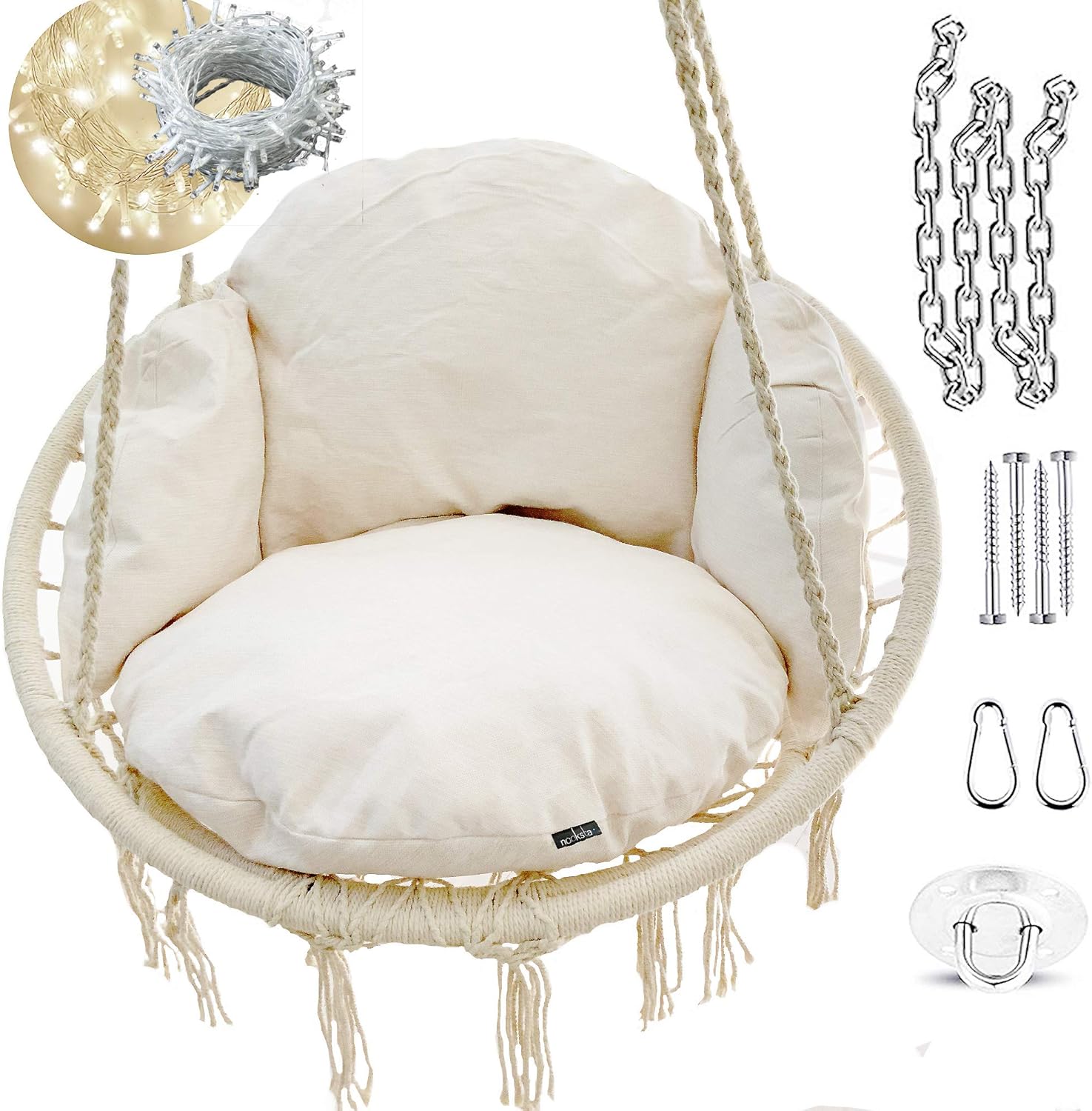 Amazon Com Nooksta Hammock Chair Ultimate Comfort Hanging Chairs For Bedrooms Set Hanging Chair Deluxe Cushion For Macrame Swinging Chairs Hanging Kit Boho Decor Perfect For Outdoor Chair Or Bedroom Swing Kitchen