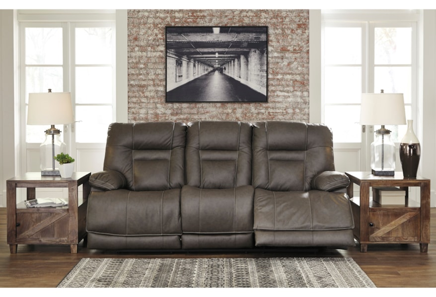 Signature Design By Ashley Wurstrow U54602 15 Power Reclining Sofa With Adjustable Headrest And Usb Port Furniture And Appliancemart Reclining Sofas