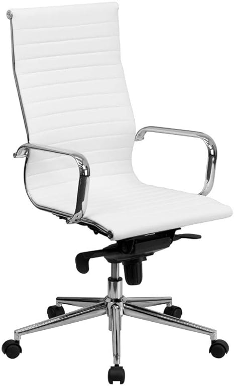 Amazon Com Flash Furniture High Back White Ribbed Leathersoft Executive Swivel Office Chair With Knee Tilt Control And Arms Furniture Decor