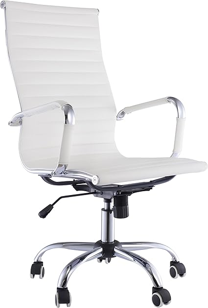 Ebs White Ribbed Desk Chair Computer Office Chair Swivel Chrome Metal Leg Ebs High Back White Pu Leather Amazon Co Uk Kitchen Home