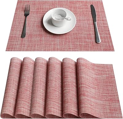 Unkown Set of 6 Woven Cotton Placemats Anti-Slip Heat Resistant Pad Western Dining Woven Cotton Dinner Table Mats Desk Holder Home Decor red 6 45 out of 5 stars 91 1699 16. Gayan Celebrations 100 Cotton Woven Table Placemat Set 6 Pack French Stripe 14 in x 20 in Beige with Tan Stripes 39 out. MNBVC Red and Black Abstract Background Placemats Set of 4 for Dining Table Washable Woven Vinyl Placemat Non-Slip Heat Resistant Kitchen Table Mats Easy to Clean 42 out of 5 stars 35 1639 16.