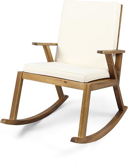 Amazon Com Christopher Knight Home 304650 Brent Outdoor Acacia Wood Rocking Chair With Water Resistant Teak Finish Cream Cushion Garden Outdoor