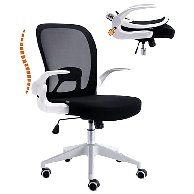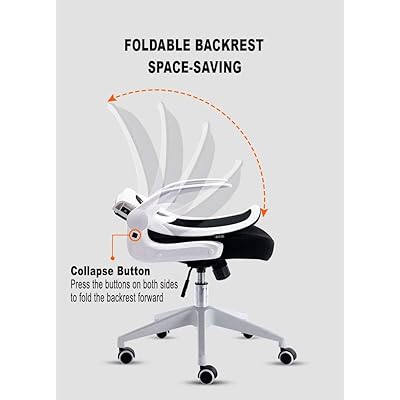Amazon Com Obbolly Ergonomic Mid Back Office Chair Home Office Desk Chair With Foldable Backrest And Flip Up Arms Breathable Mesh Executive Computer Task Chairs With Wheels And Adjustable Height White Kitchen