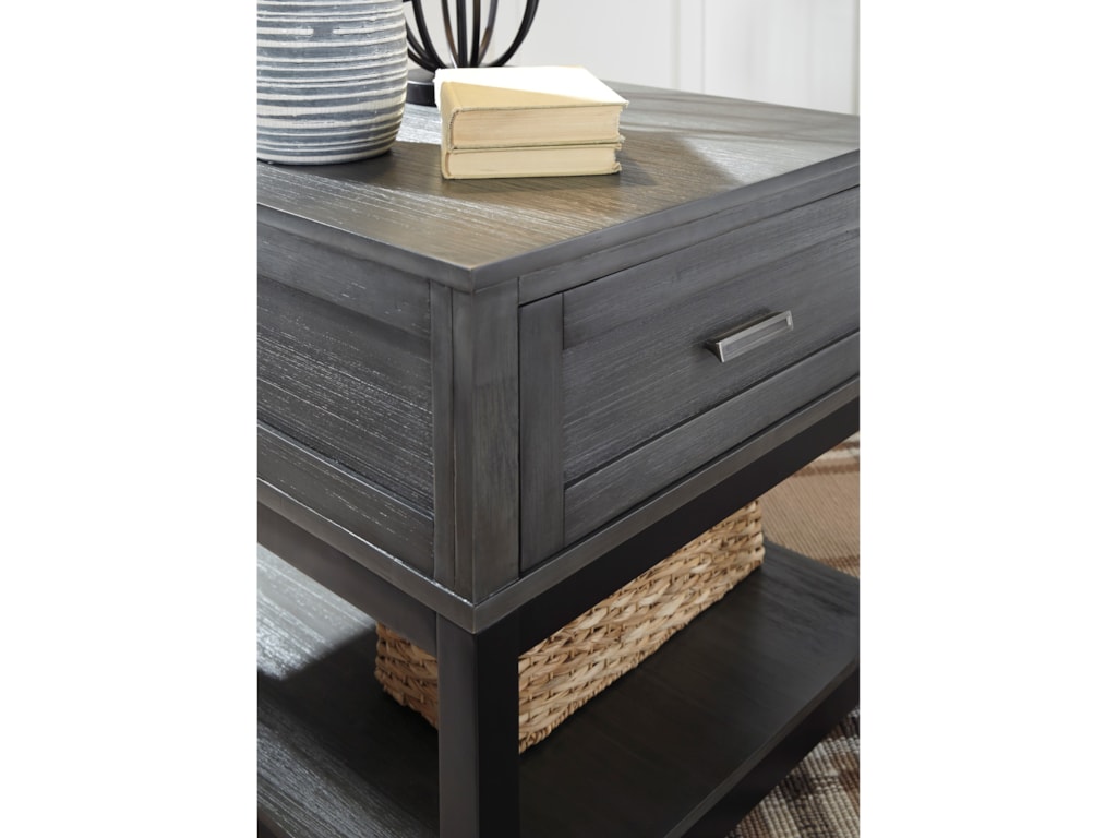 Caitbrook End Table at iStyle Furniture with delivery available in Cleveland Eastlake Westlake Mentor Medina Macedonia Ohio area. Wood Products and Other. Grayish brown and black metallic.