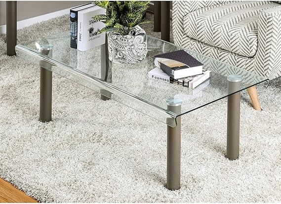Furniture Of America Creme Contemporary Glass Champagne Coffee Table Furniture Decor Amazon Com