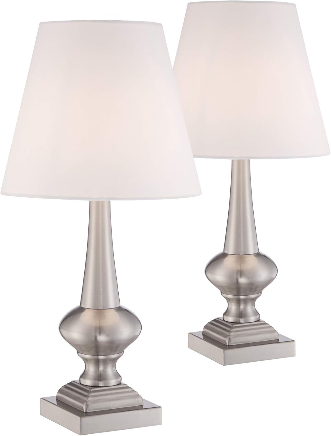 Find info on MySearchExperts. One 150 watt max A19 bulb required not included Convenient 3-way switch allows you to choose from three levels of lighting. Grandview Gallery 295 Brushed Nickel Metal Table Lamp Set Featuring Tapered Curve Design and Off-White Linen Drum Shades - Modern Lighting Perfect for Nightstands and End Tables Set of 2 Visit the Grandview Gallery Store.