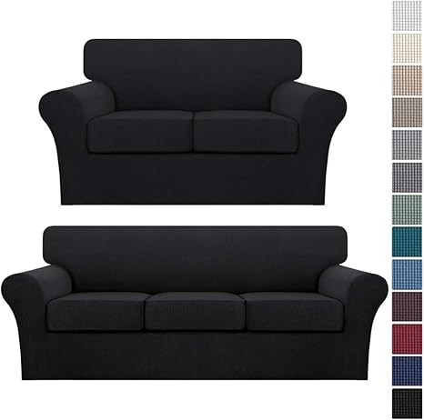 Amazon Com Black Sofa Cover For 3 Seat Cushion Couch Bundle Loveseat Cover For 2 Seat Cushion Couch Home Kitchen