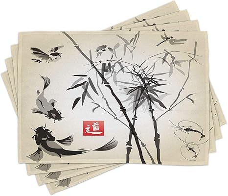 Amazon Com Lunarable Japanese Place Mats Set Of 4 Japanese Traditional Garden Design Wildlife Forest Meditation Origami Washable Fabric Placemats For Dining Room Kitchen Table Decor White Black Home Kitchen
