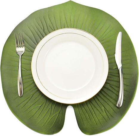 Amazon Com Oatm0ebcl 39cm X 39cm Eva Placemats Artificial Lotus Leaf Table Mats Kitchen Place Mat Insulation Mat Bowl Anti Slip Table Decor Green Home Kitchen