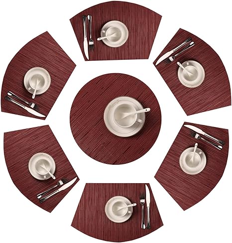 Amazon Com Shacos Round Table Placemats Set Of 7 Wedge Place Mats With Centerpiece Heat Resistant Table Mats Wipeable 7 Burgundy Red Home Kitchen