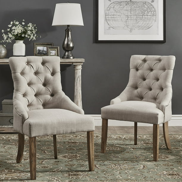Chelsea Lane Curved Back Linen Tufted Dining Chair Set Of 2 Beige Walmart Com Walmart Com