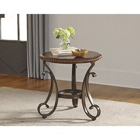 Signature Design by Ashley. Favorite this post May 27 Iron framed end table with glass top 1 60 pic hide this posting restore restore this posting. The round cocktail table and round end table each feature scrolling metal feet the base and a cherry finish table top with rope twist edge detail.