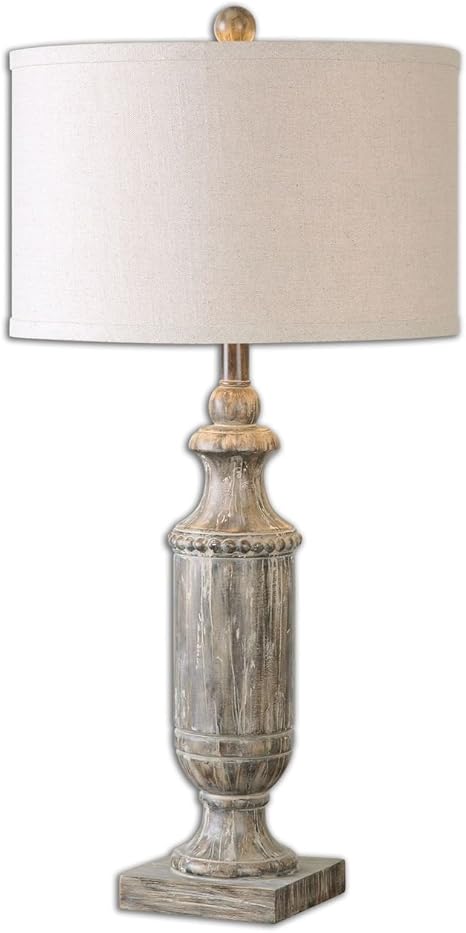 Distressed Brown Urn Table Lamp Weathered Wood Finish Amazon Com